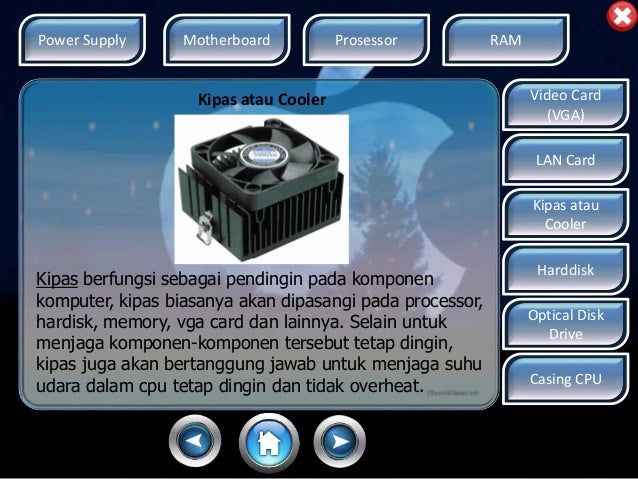 Berikut penjelasan seluruh komponen komputer dengan fungsinya mulai dari motherboard, processor, ram, hardisk, lan, vga dan perangkat priperal lainnya.