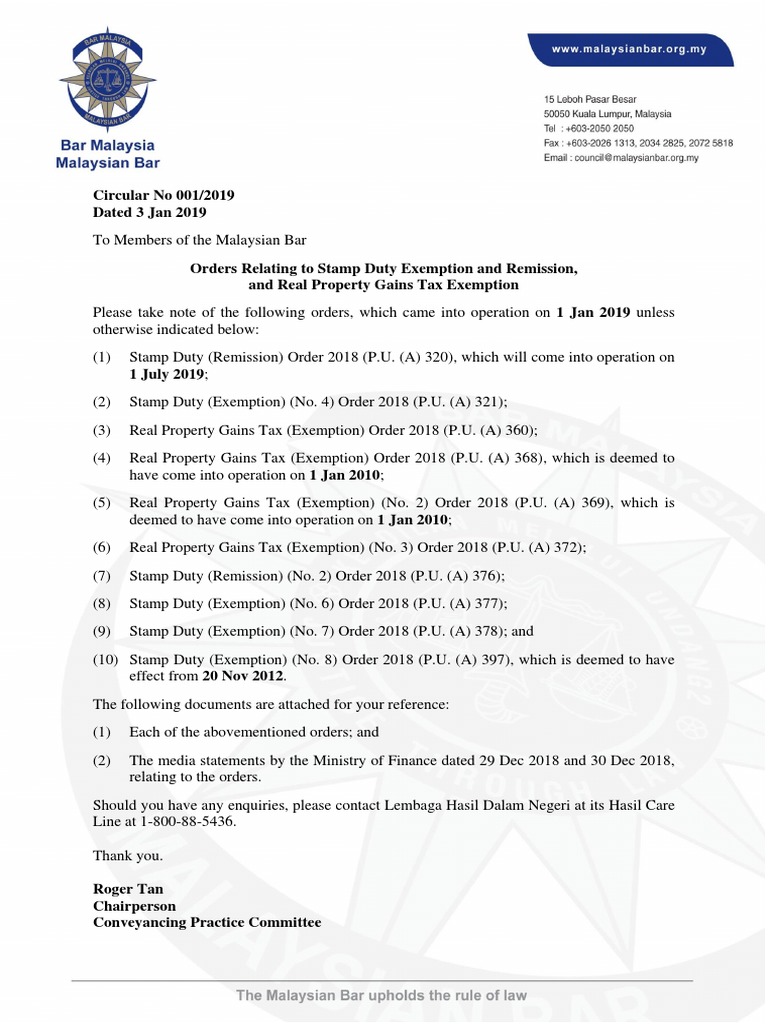 25 februari 2019 25 february 2019. Pengecualian duti setem sepenuhnya diberikan ke atas surat cara pindah milik dan perjanjian pinjaman bagi pembelian rumah kediaman pertama bernilai sehingga rm500. Bagi pembelian rumah pertama seperti dinyatakan di dalam siaran media yang berikut. Pengecualian cukai keuntungan harta tanah; Stamp duty exemption for 2019.