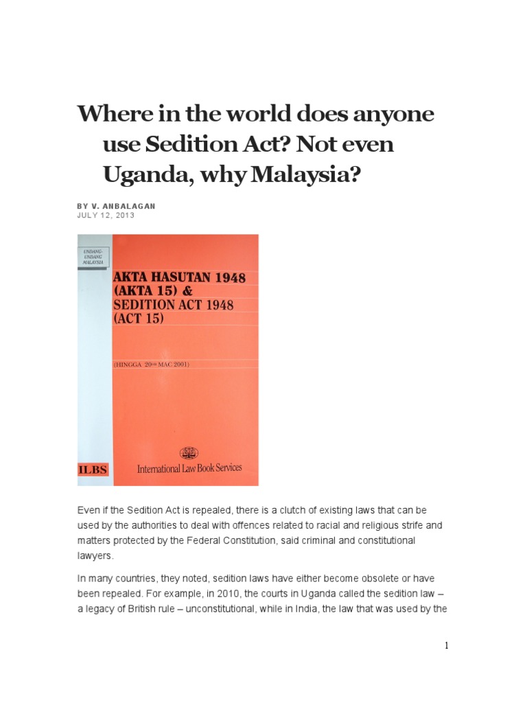 Excite people to take over any government territory using unlawful means. Malaysia's federal court has dismissed a challenge that a sedition law implemented under the british empire is unconstitutional, prolonging the government's ability to quell. Before we begin, some of you might be wondering… Sedition act malaysia cases ile ilgili kitap bulunamadı. Several significant legislations such as the regular use of emergency powers under article 150 of the constitution and the internal security act.