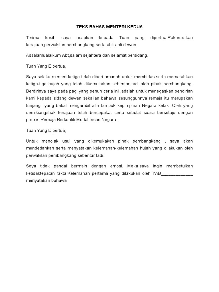 Di sini saya sertakan teks bahas ala parlimen yang telah saya gunakan pada tahun 2010 ketika bertanding melawan smk pulau indah. Apabila debat membahas pendidikan masyarakat indonesia yang lebih dari dua juta penduduk perlu memanfaatkan plastik yang ada di. Untuk itu, yuk langsung saja kita bahas detailnya. Mungkin anda pernah membaca sebuah teks dan isinya berupa ajakan yang semua informasi di alamnya tertulis singkat, padat, dan jelas. Contoh teks perbahasan ala parlimen menteri kedua yang boleh digunakan sebagai panduan.
