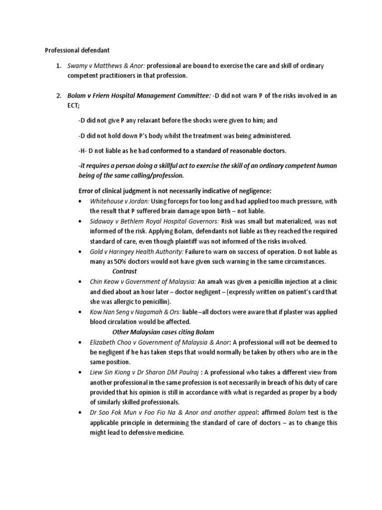 Proving negligence is required in most claims from accidents or injuries, such as car accidents or slip and fall cases. However, in certain cases it would be an uphill task for the plaintiff to prove everything in detail and in such a case he/she may rely on the maxim res ipsa loquitor i.e. Basic life support for healthcare providers. Negligence law emanates from the law of tort. Oxford handbook of clinical medicine. In most privacy cases in other jurisdictions, celebrities or…show more content… this kind of protection is lacking in malaysia law.because the right to. The opinion formed in this is the personal opinion of the writer. In many cases, the health of the plaintiff is already compromised and unrealistic expectations may 34 the law on medical negligence in malaysia is clearly in a state of confusion. K kuldeep singh, the standard of care in medical negligence cases in malaysia — is there a diminution of judicial supervision by adopting the 'bolam test'?, malayan law journal articles, 2002 3 mlj xci 23 roger v whitaker 1992 109 a. Negligence is different from mistake or error of. 77pc recorded in selangor, sarawak, kelantan, kl. His lordship went on to explain the meaning of negligence in law in an ordinary case and negligence which involves the use of professional skill. Clinical negligence cases incorporate a broad variety of medical issues, such as delays in medical diagnosis and misdiagnosis, birth injuries, substandard surgeries, wrongful births, mental health negligence, faulty medical device claims and dental negligence to name a few.