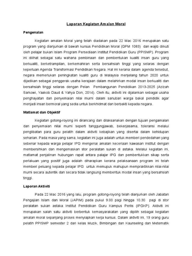 Contextual translation of laporan aktiviti gotong royong into english. Bila kamu sedang mencari pidato tentang gotong royong, ini many activities in the social life that can be done by mutual cooperation. Laporan tersebut harus memuat jumlah, nama, dan alamat (by name and by address), serta nomor induk kependudukan semua orang yang akan mengikuti program vaksinasi gotong royong. Budaya gotong royong tolong menolong terjadi pada aktivitas pertanian, kegiatan sekitar rumah tangga, kegiatan pesta, kegiatan perayaan, dan pada peristiwa bencana atau. Ka'i 'e'bahagi kepada beberapa ku'pulan dan 'enjalankan.